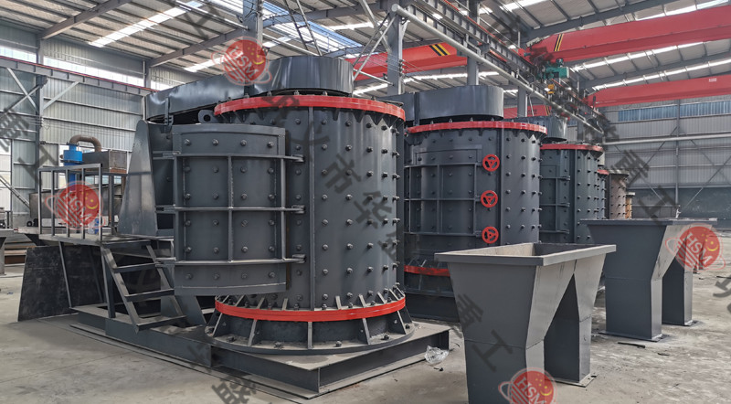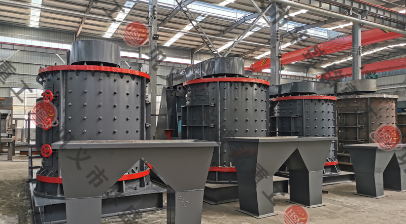物料由機(jī)器上部垂直落入高速旋轉(zhuǎn)的葉輪內(nèi),在高速離心力的作用下,與另一部分以傘狀形式分流在葉輪四周的物料產(chǎn)生高速撞擊與粉碎,物料在互相撞擊后,又會(huì)在葉輪和機(jī)殼之間以物料形成渦流多次的互相撞擊、摩擦而粉碎,從下部直通排出,形成閉路多次循環(huán),由篩分設(shè)備控制達(dá)到所要求的成品粒度。